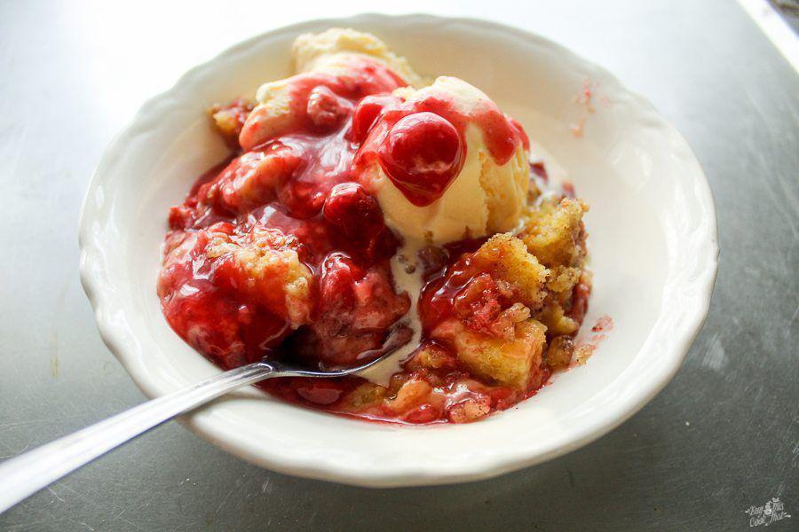 "name": "Cinnamon Cherry Crockpot Cobbler",