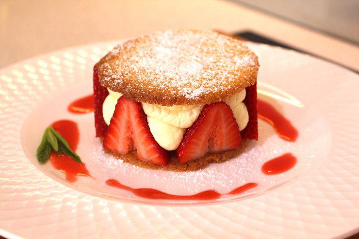 "name": "Strawberries with Sable Biscuits and Orange and Lemon Syllabub",
