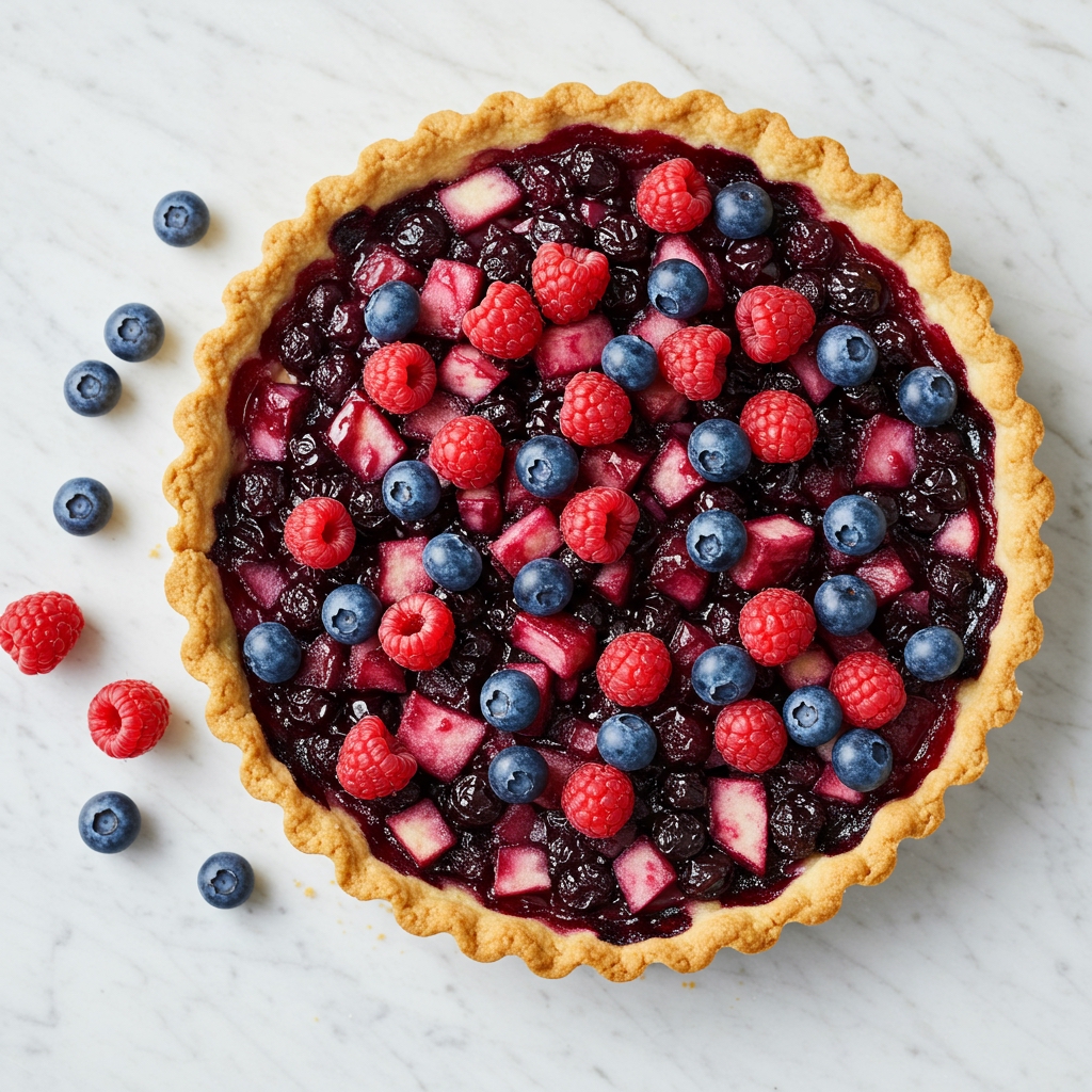"name": "Blueberry, Raspberry, and Apple Tart",
